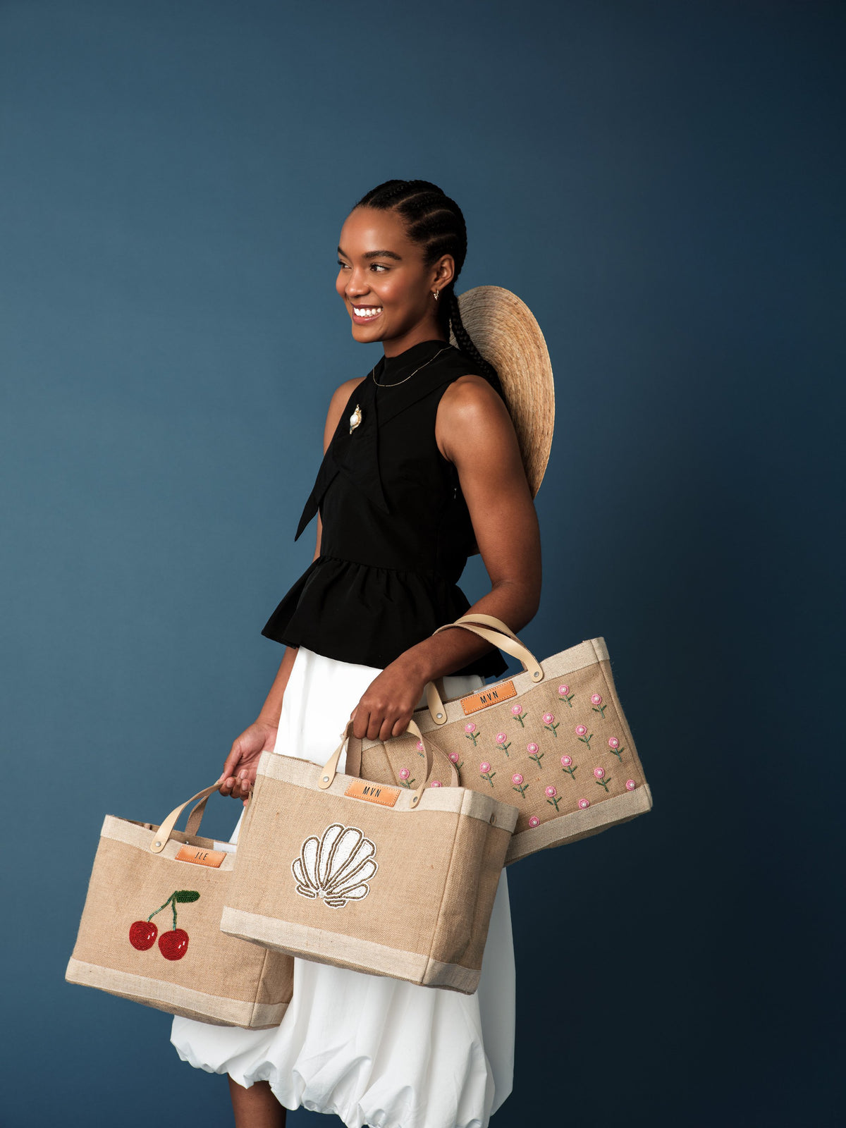 Petite Market Bag in Navy with Beaded Sardines | Ships: April 15Petite Market Bag in Navy with Beaded Sardines | Ships: April 15